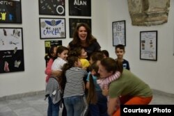 Димитрова и уметницата и директорка на Национална галерија - Дита Старова Ќерими на една од детските работилници