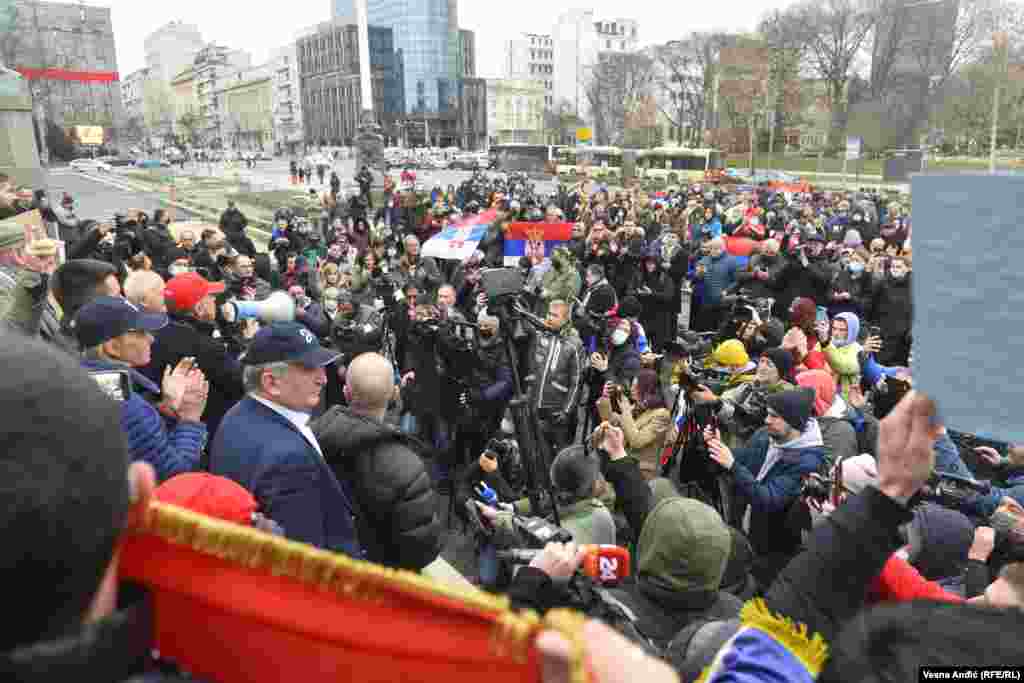 Пред српското Собрание во центарот на Белград се одржа протест за поддршка на Новак Ѓоковиќ, носителот на АТП листата. На покана на таткото на тенисерот Срѓан Ѓоковиќ се собраа неколку стотици луѓе.