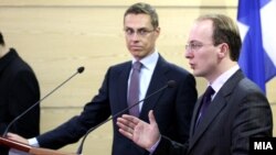 Очекуваше дека ќе му биде поставено такво прашање, но Министерот за надворешни работи на Република Финска Александер Стуб изјави дека не е дојден за да ја понуди помошта на Финска како медијатор во спорот за името. Сепак, најави поголемо учество на меѓународната заедница во решавањето на спорот за името а зборуваше и за конкретни рокови кога може да се очекува решение: