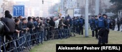 Група демонстранти се обиделе да го пробијат полицискиот кордон за да влезат во законодавниот дом.