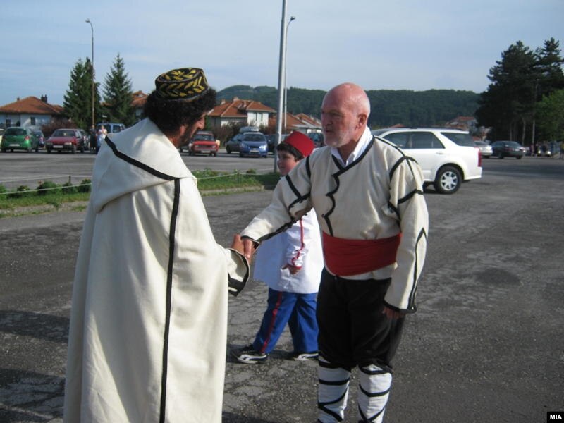 Досегашниот евроамбасадор Ерван Фуере облечен како комита, на манифестацијата Етноград Крушево на 19 јули 2010 година