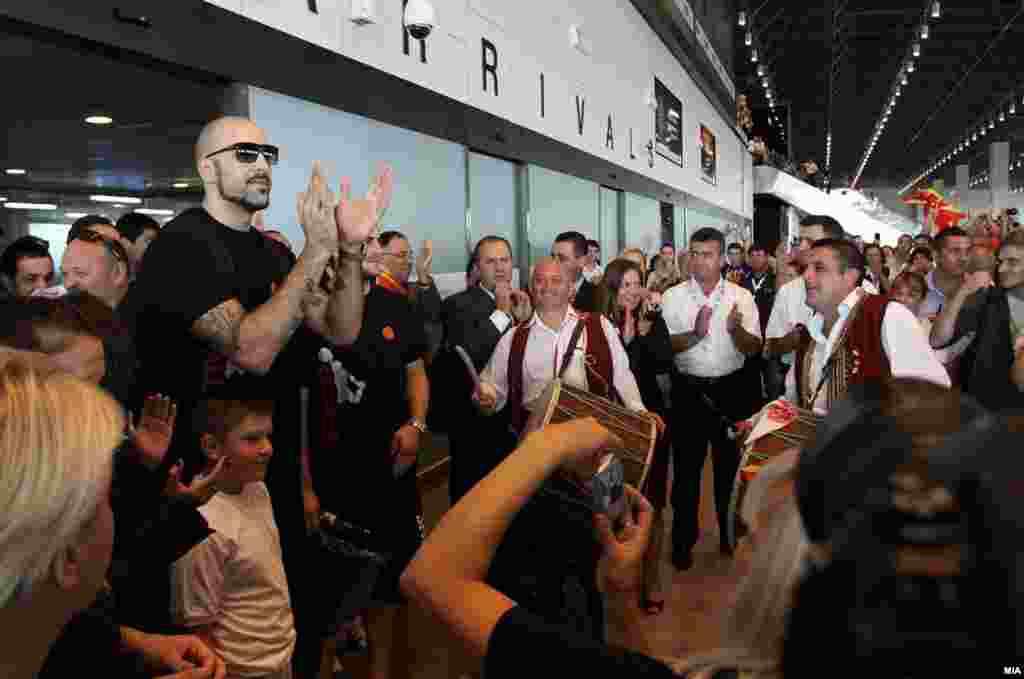 Илјадници граѓани на аеродормот „Александар Велики“, низ улиците на Скопје и на плоштадот „Македонија“, им приредија величествен пречек на македонските кошаркарски репрезентативци кои го освија четврото место на Европското првенство во Литванија.
