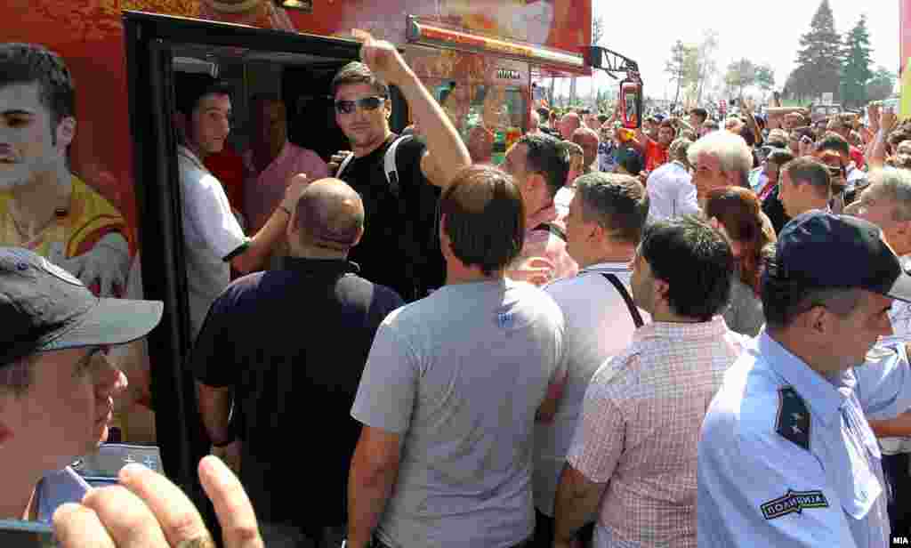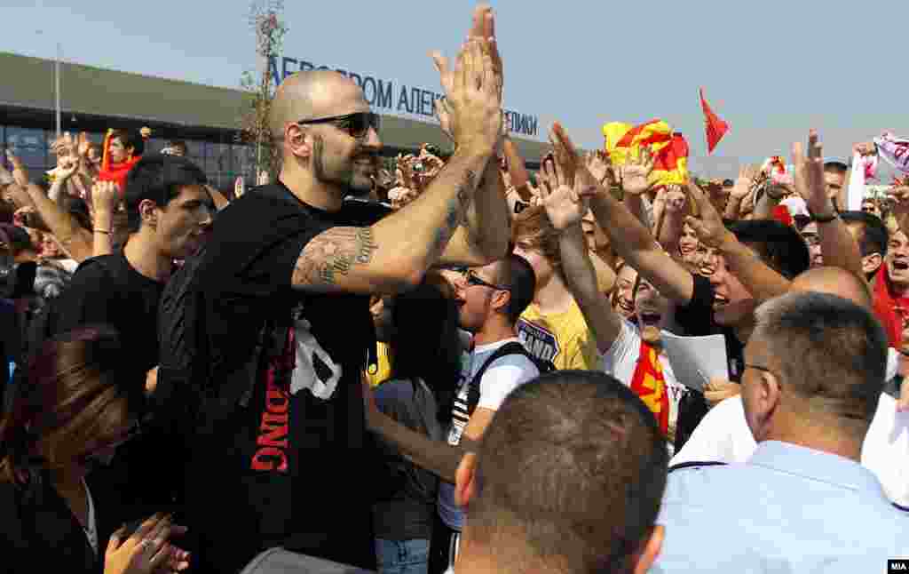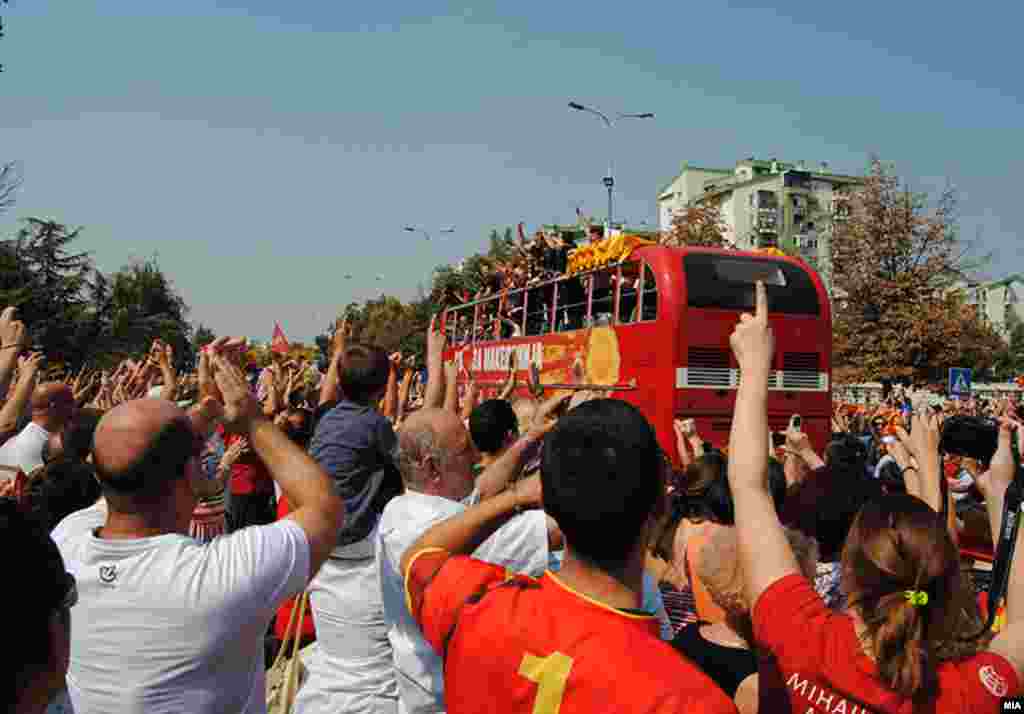 Илјадници граѓани на аеродормот „Александар Велики“, низ улиците на Скопје и на плоштадот „Македонија“, им приредија величествен пречек на македонските кошаркарски репрезентативци кои го освија четврото место на Европското првенство во Литванија.