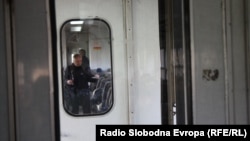 Две години патувам со воз, доцнење секој ден, морам да идам порано со возот за да не доцнам, оти ако доцнам ќе ме избркаат, сега се е приватно.Патник на железничката станица во Велес.