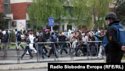Стотина претежно млади лица протестираа денеска пред владата на Република Македонија поради минатонеделното петкратно убиство во близина на Скопје, јави репортерот на Радио Слободна Европа. Тие фрлале и камења кон полицијата, зградата и врз новинарите кои го следеле протестот кој делумно продолжил и пред Собранието. Во насилните протести оштетени се полициски возила и дел од зградите во централното гратско подрачје. Групите се организирале на протест преку социјалните мрежи.