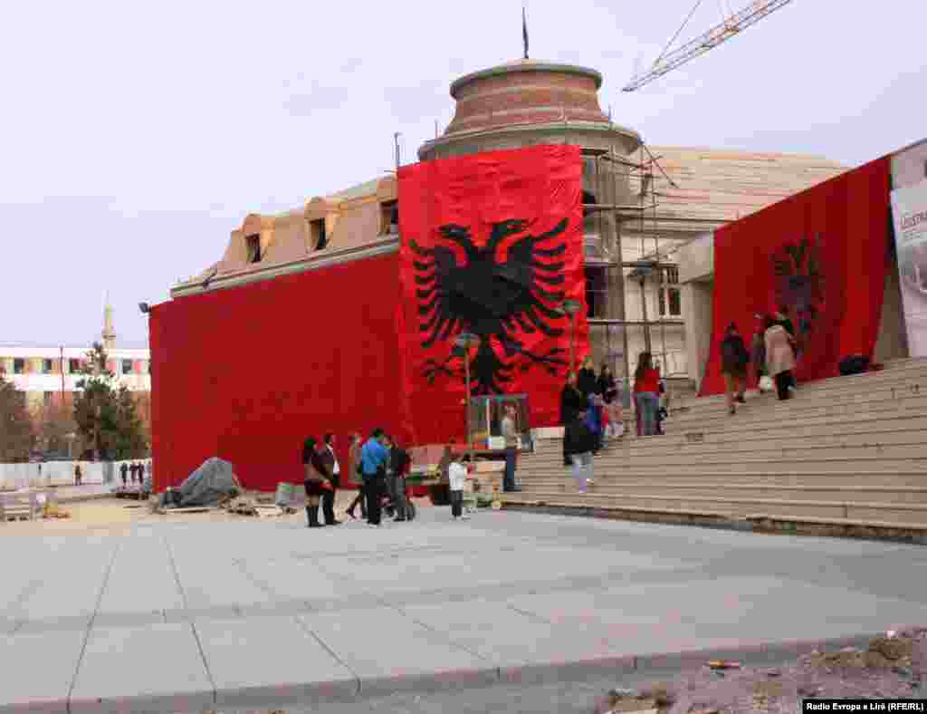 100 годишнината од албанското знаме се одбележува и во Приштина. Главниот град на Косово, обвиткан во црвено-црни бои.