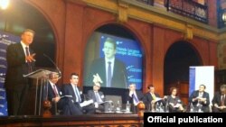 Тој, во својот говор на конференцијата за Западен Балкан „Пријатели на ЕУ“, истакна дека решение е можно само со отворена политика кон соседите, на пример Грција или Бугарија.