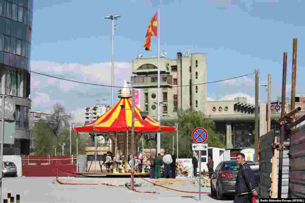 Работници ја поставуваа од претходно најавената вртелешка на плоштадот Македонија во Скопје во близина на Камениот Мост. Според податоците објавени на Бирото за јавни набавки, кароселот чини 9,99 милиони денари, односно околу 162 илјади евра.