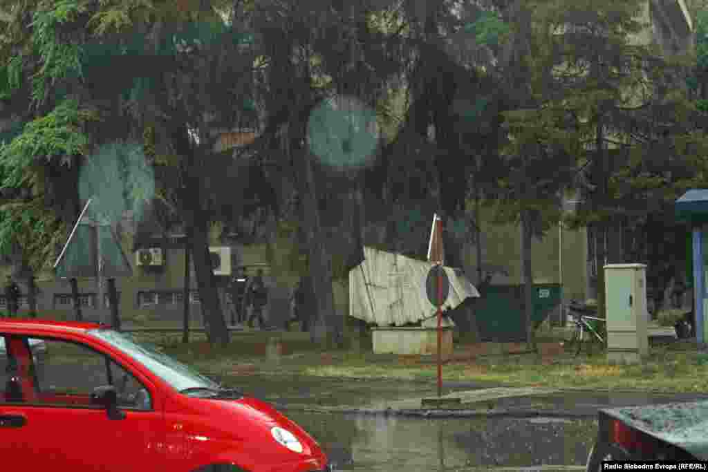 По неколкучасовниот притвор на 11 активисти од иницијативата Паркобрани, кај паркот пред Бристол во центарот на Скопје се поставени железни огради. Отежнато е движењето и забележливо е зголемено полициско присуство. Полицијата не дозволи одблизу да се фотографира делот каде што се планира да се гради административна зграда.
