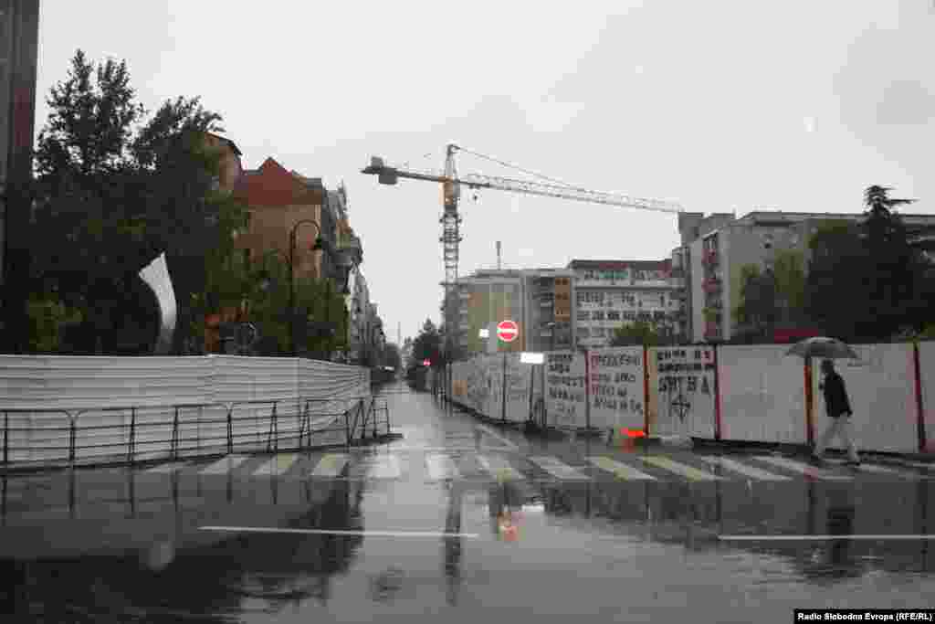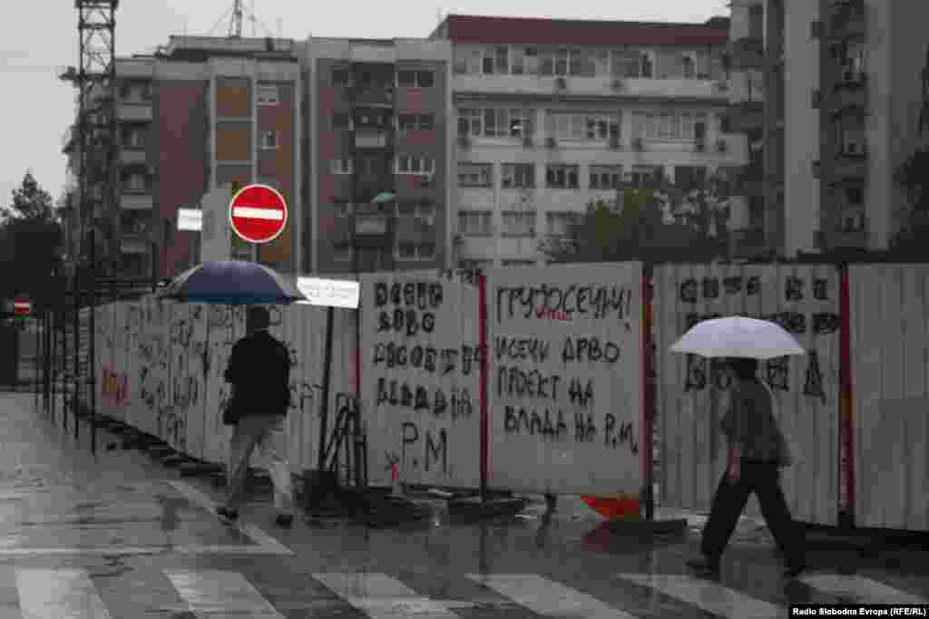 По неколкучасовниот притвор на 11 активисти од иницијативата Паркобрани, кај паркот пред Бристол во центарот на Скопје се поставени железни огради. Отежнато е движењето и забележливо е зголемено полициско присуство. Полицијата не дозволи одблизу да се фотографира делот каде што се планира да се гради административна зграда.