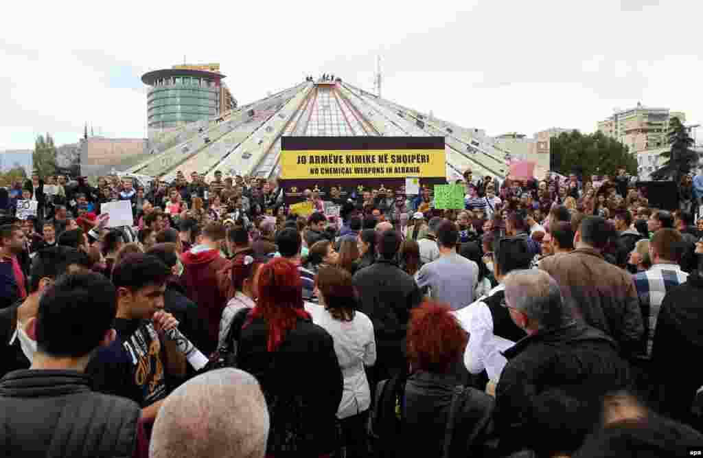 Протести и негодувања во Албанија поради евентуалното уништување на сириското хемиско оружје во таа земја.