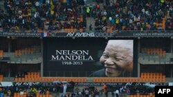 Барак Обама и Раул Кастро чии земји се идеолошки непријатели над 50 години со лична почит до Нелсон Мандела на фудбалскиот стадион во Јоханесбург, каде што тој пред 23 години, штотуку ослободен од затвор, беше поздравен од неговите приврзаници како надеж за нова Јужна Африка ослободена од апартхејдот.