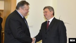 Венизелост изјави дека со премиерот Никола Груевски се согласиле дека треба да се искористат во целост процедурите преку ОН и амбасадорот Нимиц. Грчкиот министер вели дека му било пријатно при посетата на земјава и е подготвен да дојде пак, а го покани и неговиот македонски колега да ја посети Грција за време на Состанокот на земјите членки на ЕУ во Солун во април. Венизелос вели дека целосната евроатлантска интеграција на земјата е важна за регионалната стабилност и за грчкото претседателство.