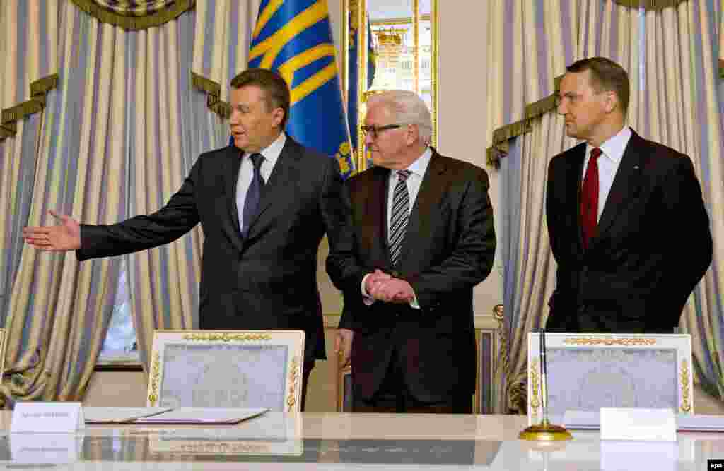 Украинскиот парламент го врати Уставот на земјата од 2004 година со што се намалуваат ингеренциите на шефот на државата, а се зголемуваат оние на собранието. Претходно претседателот Виктор Јанукович и лидерите на опозицијата го потпишаа договорот за решавање на политичката криза во земјата.