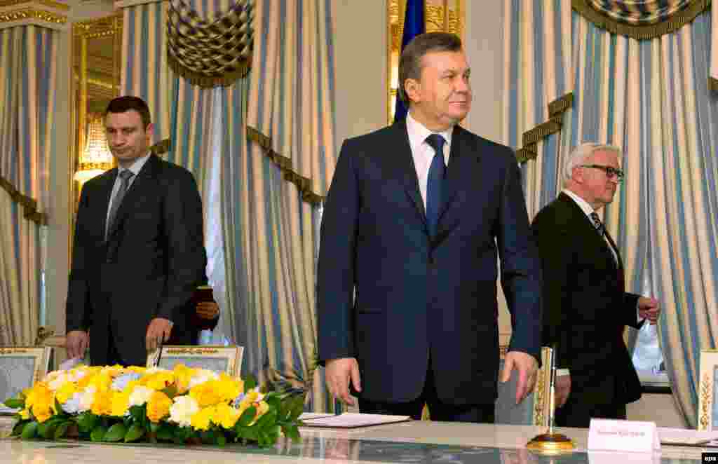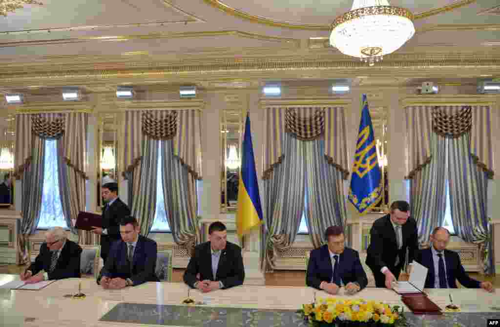 Украинскиот парламент го врати Уставот на земјата од 2004 година со што се намалуваат ингеренциите на шефот на државата, а се зголемуваат оние на собранието. Претходно претседателот Виктор Јанукович и лидерите на опозицијата го потпишаа договорот за решавање на политичката криза во земјата.