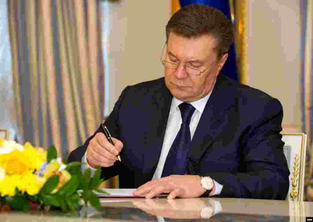 Украинскиот парламент го врати Уставот на земјата од 2004 година со што се намалуваат ингеренциите на шефот на државата, а се зголемуваат оние на собранието. Претходно претседателот Виктор Јанукович и лидерите на опозицијата го потпишаа договорот за решавање на политичката криза во земјата.