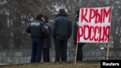 На Крим, антируските демонстранти влегоа во регионалниот парламент каде што се одржуваше вонредна седница на која проруските пратеници бараа референдум за отцепување од Украина.