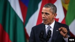 Претседателот Барак Обама, зборувајќи за единството на Европа постигнато по двете светски војни, а потоа и по Студената, изјави дека продолжува натпреварот на идеи што водеа кон овие конфликти.