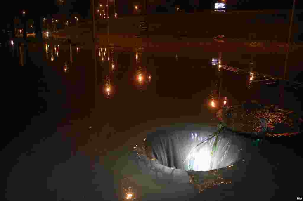 Големо невреме со пороен дожд, град и силен ветер синоќа го погоди Скопје. Улиците за кратко време беа поплавени, имаше проблеми и со снабдувањето со струја. Синоќа во главниот град беше регистриран и земјотрес. Фото: МИА.