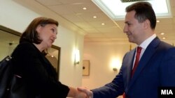 По средбата со премиерот Никола Груевски, Нуланд повика на важноста на политичката и меѓуетничката хармонија, на исполнувањето на Охридскиот рамковен договор како предуслов за иднината на државата, на потребата од продолжување на реформите за забрзување на евроинтеграциските процеси. Ја повтори американската поддршка за интегрирана Македонија и за решение на спорот за името како предуслов кон остварување на нејзините евроатлански аспирации.