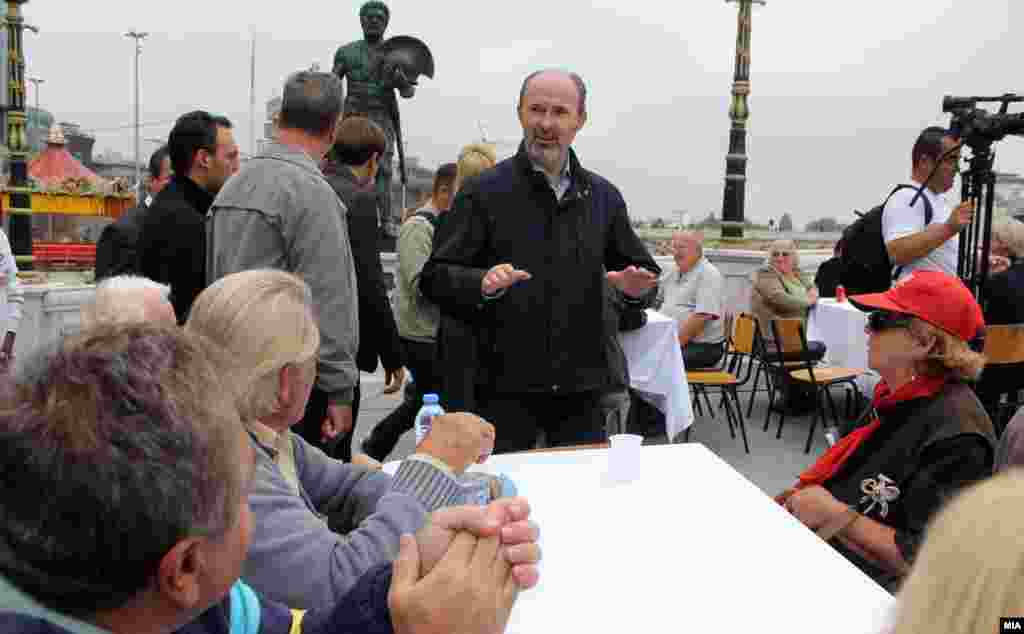 Претпладнево на Камениот мост и Мостот на цивилизациите во Скопје се одржа манифестацијата „Појадок на мост“. Освен граѓаните и организаторот, градоначалникот Коце Трајановски, на појадокот дојдоа и неколкумина министри.
