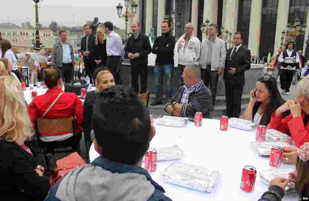 Претпладнево на Камениот мост и Мостот на цивилизациите во Скопје се одржа манифестацијата „Појадок на мост“. Освен граѓаните и организаторот, градоначалникот Коце Трајановски, на појадокот дојдоа и неколкумина министри.