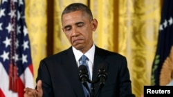 Претседателот Обама на прес-конференцијата изрази претпазлив оптимизам во врска со постигнувањето договор со Техеран за иранската нуклеарна програма.