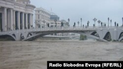 Вчерашните обилни врнежи од дожд значително го зголемија нивото на реката Вардар. Во центарот на Скопје се забележува дека водата е пред излевање од коритото. На водата дополнително и одат во прилог и градежните работи во коритото на реката Вардар.