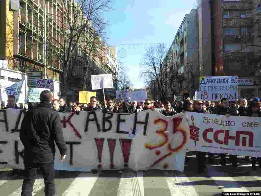 Неколку стотици граѓани излегоа на протест во Скопје против воведувањето задолжително плаќање придонеси за хонорарците кое стапува на сила од почетокот на наредниот месец. Демонстрантите сметаат дека со ваквиот закон дополнително ќе осиромаши најзагрозениот дел од работниците, кои не можејќи да најдат редовно вработување, егзистенцијата ја обезбедуваат работејќи за хонорар, кој, според организаторите, не е ниту редовен, ниту висок. Хонорарците сега плаќаат само персонален данок од 10 отсто, а од први јануари, за хонорарите повисоки од минималната плата ќе се плаќаат и придонеси за пензиско и здравствено осигурување, со што вкупните давачки ќе надминат 35 отсто од хонорарот.