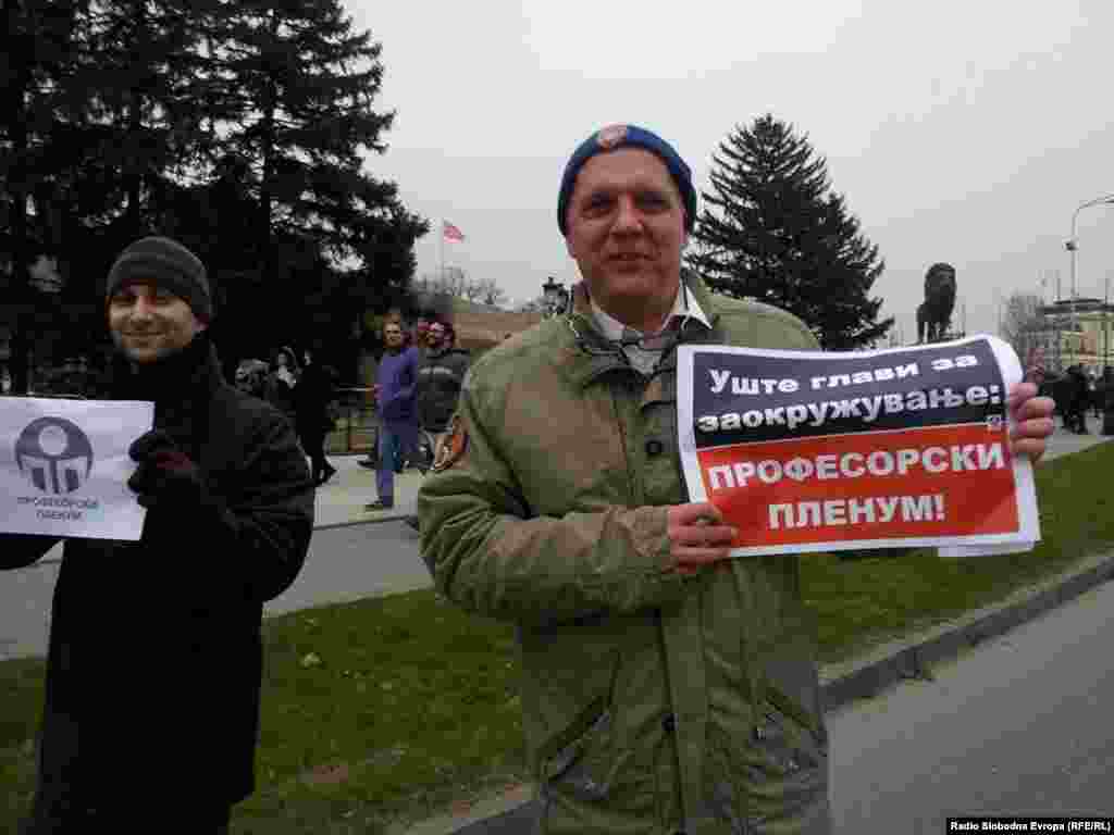 Пред владата на Република Македонија протестот организиран од Студентски пленум, против полагањето државен испит и реформите во образованието.