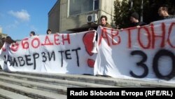 Со алтернативни предавања, работилници, дебати и проекции на филмови е исполнет и четиринаесетиот ден во автономната студентска зона прогласена на неколку факултети во Скопје. Студентите, кои веќе две недели го „окупираат“ Филозофскиот факултет, се шегуваат дека нивната „автономна зона“ станала подолготрајна од Крушевската Република. Студентот Жарко Јовановиќ од Факултетот за драмски уметности вели дека граѓаните сè уште доаѓаат на факултетот и донираат храна и оти целиот ден им и исполнет со некакви активности.