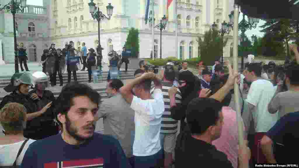 Над илјада граѓани денеска протестираат пред владата по објавувањето на прислушувани разговори за убиството на Мартин Нешковски од таканаречената 28 бомба на опозицијата. Протестот беше организиран преку социјалните мрежи. Демонстрантите извикуваат „Убијци“, „Излези Никола“ и „Кај ви е началникот“. Има и тензии меѓу полицијата и демонстрантите. Дел од демонстрантите биле пуштени и да влезат во дворот на владата.