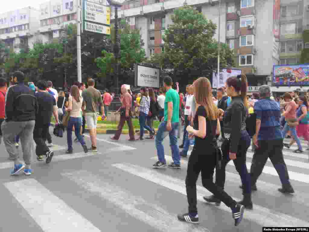 Неколкуте илјади демонстранти, на кои не им беше дозволено да протестираат пред владата, сега се на булеварот пред Собранието. Демонстрантите свиркаат и извикуваат „нема правда, нема мир“ и „убијци“.