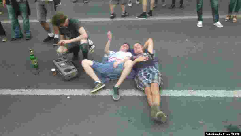 Неколкуте илјади демонстранти, на кои не им беше дозволено да протестираат пред владата, сега се на булеварот пред Собранието. Демонстрантите свиркаат и извикуваат „нема правда, нема мир“ и „убијци“.