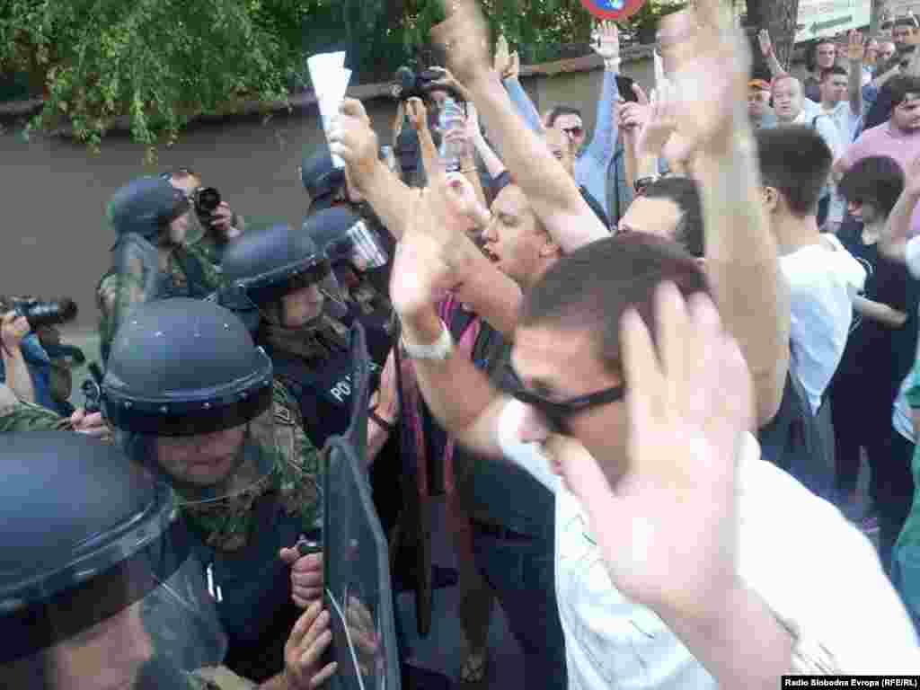 Демонстрантите откако беа спречени да протестираат пред зградата на Владата, се упатија кон МВР, но и таму ги пречека полициски кордон, по што се упатија кон зградата во која живее премиерот.