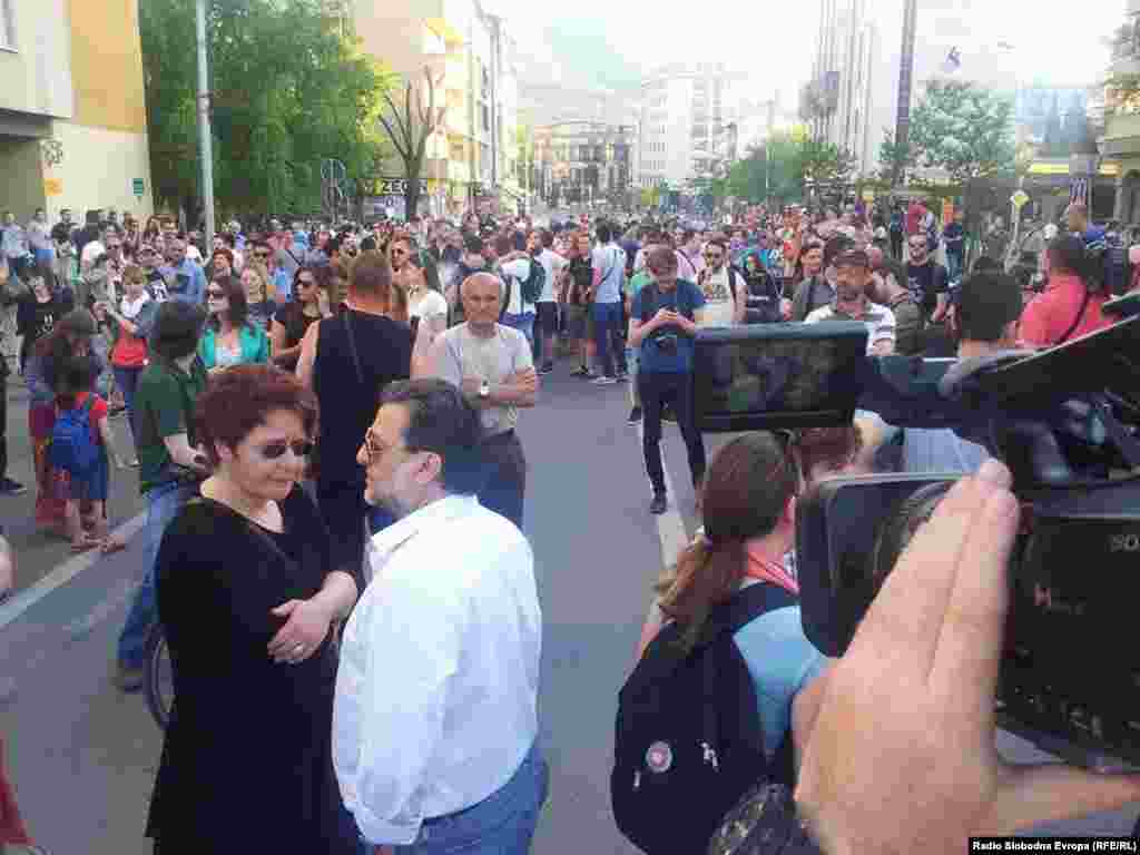 Демонстрантите откако беа спречени да протестираат пред зградата на Владата, се упатија кон МВР, но и таму ги пречека полициски кордон, по што се упатија кон зградата во која живее премиерот.