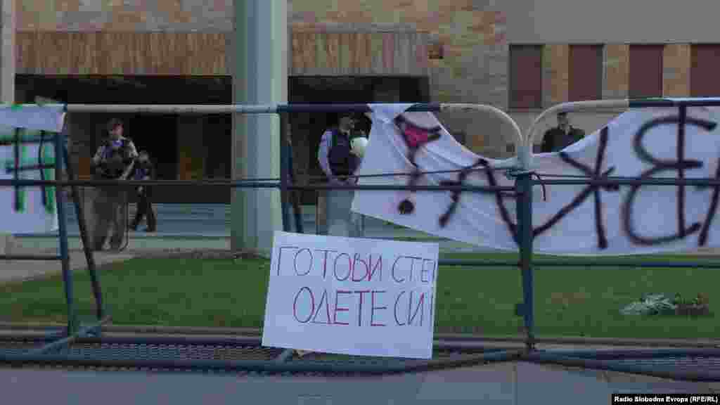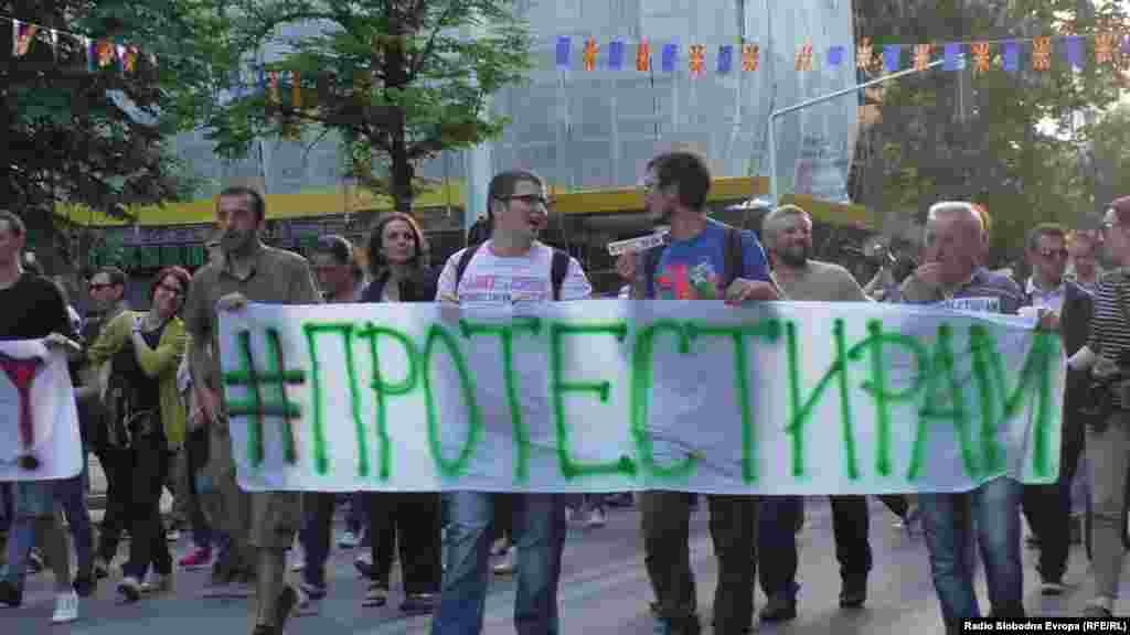 Неколку стотици луѓе на кои не им беше дозволено да протестираат пред Влада, тргнаа на мирен марш кон Собрание.ие пред полицајците поставија неколку транспаренти на кои меѓудругото пишува „Доле влада“, „Оставки“, „Готови сте, одете си“, „Обединети во разликите“.