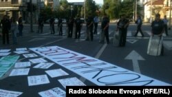 На голем транспарент тие напишаа „Збогум Никола“, а останатите пораки беа од типот „Македонија се сака со оставки“, „Доле влада, горе народ“, „Цела Влада во затвор“, „Притвор за криминалци, не за студенти.“