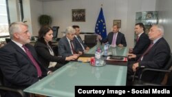 Од 12 часот денеска во Брисел траат разговорите на еврокомесарот за проширување Јоханес Хан со лидерите на ВМРО-ДПМНЕ, СДСМ, ДУИ и ДПА. Досега воопшто нема партиски брифинзи или официјални изјави за тоа што со часови разговараат Никола Груевски, Зоран Заев, Али Ахмети и Мендух Тачи со Хан и известувачот за Македонија на Европскиот парламент Иво Вајгл кој исто така е присутен на средбата.