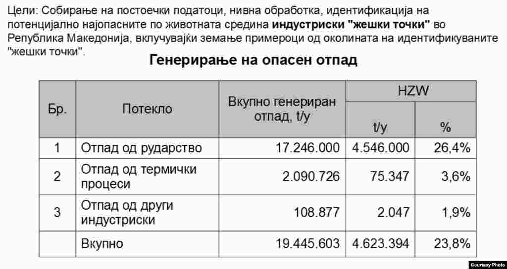 Со над 19 милиони тони индустриски отпад што го создаваат рудниците, металургијата и термоелектраните, големи површини од почвите, но и водите, воздухот и храната во Македонија во континуитет е загадена со тешки метали.
