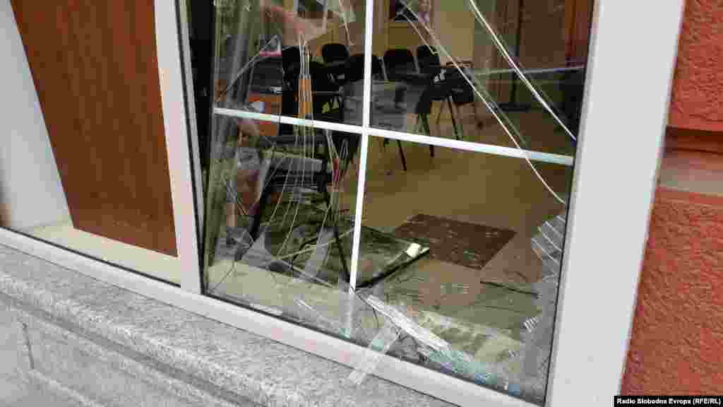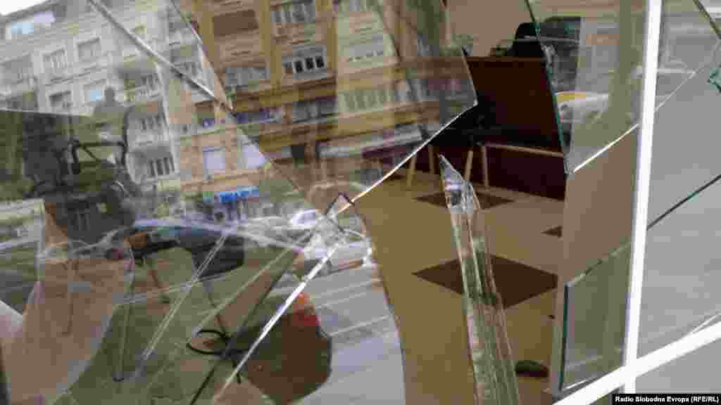 Искршени стакла и оштетена фасада на Народната канцеларија на претседателот на Македонија Ѓорѓе Иванов и на Министерството за правда по синоќешните протестите против одлуката на претседателот да помилува политичари од власта и опозицијата.