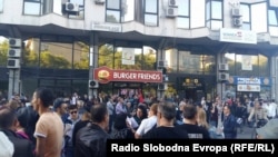 Во знак на поддршка за Хрка, група средношколци го блокираа сообраќајот на аголот од улицата Таковска и булеварот Крал Александар и го развеаја транспарентот „Сметајте на нас“.