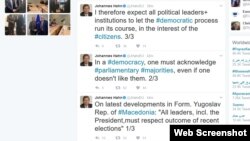 Тој во следната порака напиша дека „Во една демократија, парламентарното мнозинство мора да биде признаено, дури и ако тоа не му се допаѓа некому.“