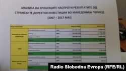 Во изминатите десет години во земјата влегле 25 компании кои вработиле вкупно 20 илјади лица. Доколку се подели бројката на потрошени пари за странските директни инвестиции излегува дека секој работник Македонија ја чинел во просек по 11 илјади евра.