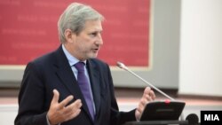 Eрокомесарот за проширување Јоханес Хан на својот твитер профил порача дека ЕУ е охрабена од последната рунда преговори помеѓу Скопје и Атина за спорот за името.