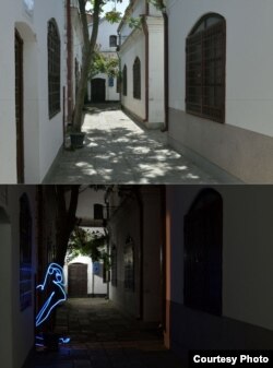 - Така дојдов на идеја дека можеби најдобар одговор на темата „Вкрстување“ ќе биде оваа соработка со Велимир. Го разработив концептот и дојдов до заклучок дека би било интересно јавниот простор да го снимам во денска светлина и потоа во вечерна, при што мракот тој може да го искористи како платно за да ги нацрта со светлина своите фантастични суштества. Затоа изложбата ја нарековме „Приватни демони“. Тоа се всушност демоните кои ги креира Велимир во темнината. Неговата светлинска интервенцијата е миговна и го оплеменува јавниот простор интимно, не одземајќи му ништо од неговиот заедничкиот карактер, вели Јаневска - Илиева.