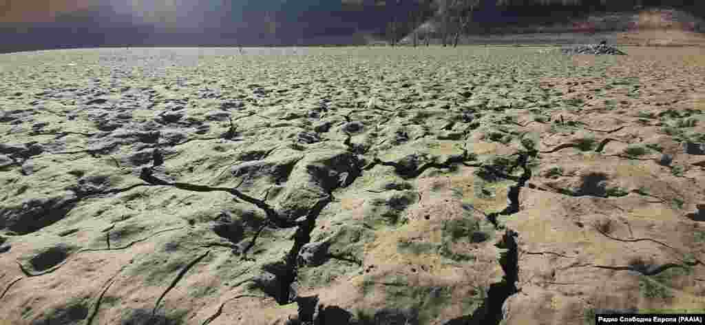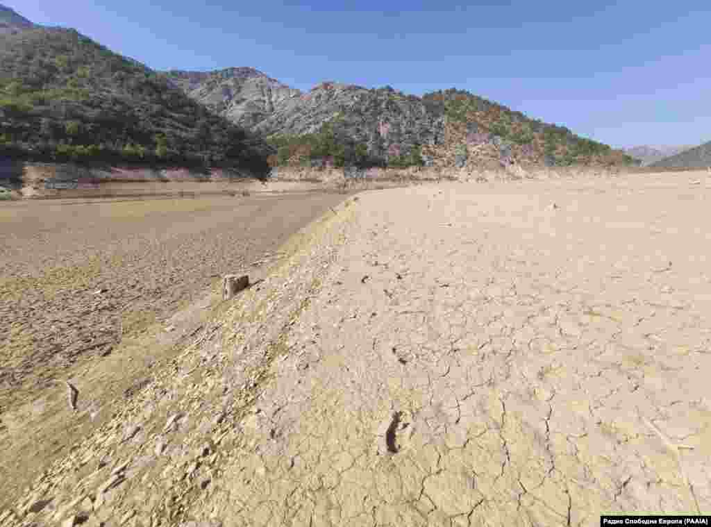 Најголемото вештачко езеро во државава и 15 годишната акумулација, Козјак годинава со сушата во регионов се повлекува и пресушува.