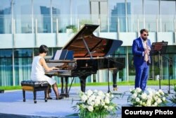 Васко и пијанистката и негова сопруга Шунјин Ванг Дуковски