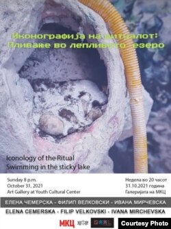 „Иконографија на ритуалот: Пливање во лепливото езеро“ е насловен колаборативниот проект на визуелните уметници Елена Чемерска, Ивана Мирчевска и Филип Велковски, што од 31 октомври до 8 ноември годинава, во организација на галеријата ГРАЛ, се одвива во Младински културен центар во Скопје.