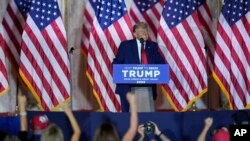 „Враќањето на Америка започнува токму сега“, им рече 76-годишниот поранешен претседател на стотици приврзаници собрани во раскошна сала обложена со американско знаме во неговата резиденција Мар-а-Лаго на Флорида.